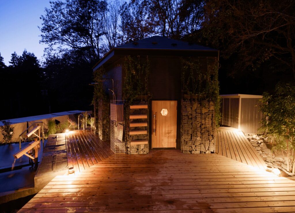 水風呂はディープダイブ型・座り型・寝そべり型の3タイプが用意されており、好みのスタイルで冷却できます。外気浴スペースは自然の中に設けられており、森林浴をしながらのととのい体験が可能です。セルフロウリュも楽しめるため、自分のペースでサウナを満喫できます。