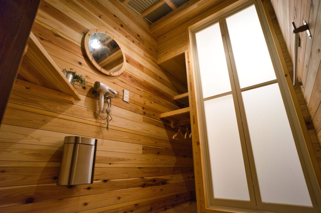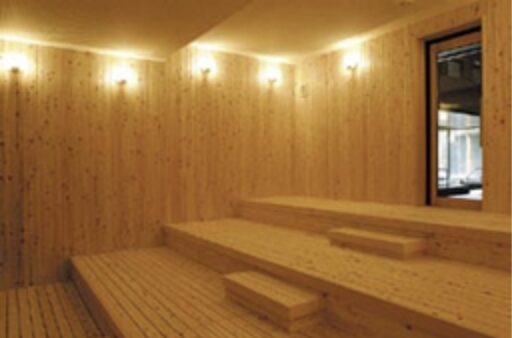 木材をふんだんに使用したサウナ室は、森林浴効果も期待できる癒しの空間です。アウトドア要素を取り入れた開放的な設計が特徴です。
